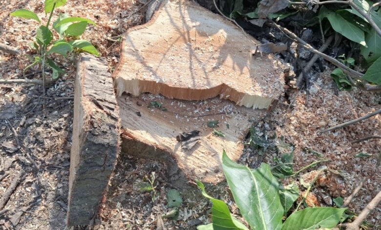 नई सराय गांव में बिना अनुमति काटे गए नीम के पेड़